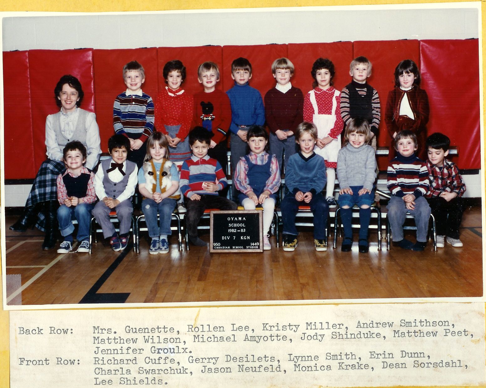 Oyama Elementary Kindergarten class 1982. Phot from school archives.